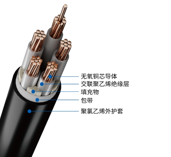 字母含義:YJ:交聯(lián)聚乙烯絕緣;V:聚氯乙烯護(hù)套;L:鋁導(dǎo)體