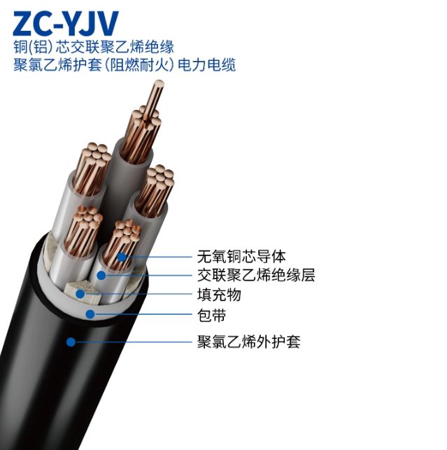 字母含義:YJ:交聯(lián)聚乙烯絕緣;V:聚氯乙烯護套;L:鋁導(dǎo)體(銅導(dǎo)體省略)